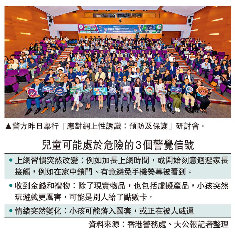 警方昨日舉行「應對網上性誘識:預防及保護」研討會,邀請各界專家及代表,從多角度探討兒童遭受網上性誘識的風險,並共同商討應對策略。40多歲的阿強(化名),曾經透過社交平台發布免費補習信息,藉此騙取一對父母信任,和兩名約八歲的孩童發生非法性行為,被判入獄七年:談及被捕後,被兩名兒童當場指證,阿強悔不當初,他以自身經歷作出提醒,「『好人牌』(假扮好人)真是萬試萬靈,大家對好人要有戒心。」
