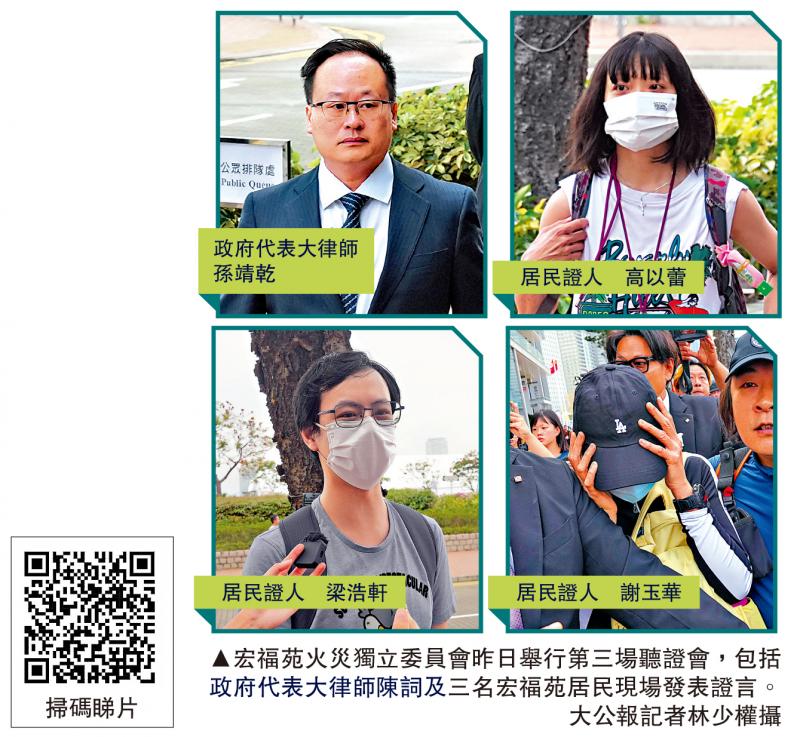 宏福苑火災獨立委員會昨日舉行第三場聽證會,政府代表大律師陳詞表示,房屋局獨立審查組(ICU)人員在檢測棚網前通知承建商,是因為需有檢驗人員在場協助,澄清並非通風報信。市區重建局代表大律師表示,宏福苑並非透過「招標妥」聘請工程顧問,故對聘用工程顧問「鴻毅」的過程認知有限。