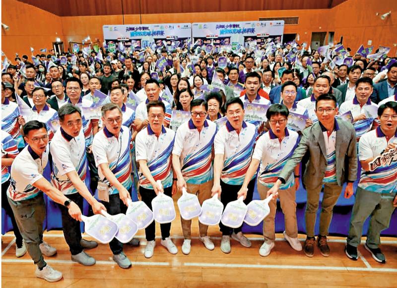 【大公報訊】記者王蕙如報道:元朗警區聯同元朗區少年警訊名譽會長會,昨日正式啟動「國安先鋒」計劃(圖),首創「動靜結合」模式,將新興運動匹克球與國家安全教育深度融合,旨在培養青少年愛國守法的價值觀。活動期間,多位主禮嘉賓與現場接近300名區內師生共同見證體育競技與國安教育結合的豐碩成果。