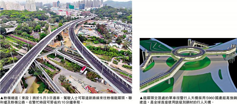 【大公報訊】政府昨日(21日)公布,粉嶺繞道(東段)將於5月3日(星期日)上午8時通車。繞道通車後,駕駛人士可取道新路線來往粉嶺龍躍頭、聯和墟及粉嶺公路,毋須途經上水及粉嶺市中心的繁忙道路,在繁忙時段可節省約10分鐘車程。