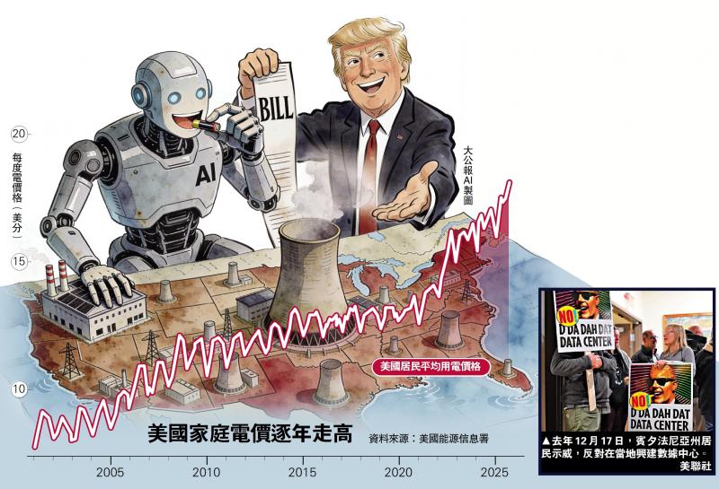人工智能(AI)產業發展造成電力需求激增,美國特朗普政府正推動一項爭議性的能源政策,要求美國最大電網營運商PJM舉行一場緊急電力拍賣,藉此迫使科技巨頭為新建數據中心所需的電力成本埋單,包括興建新的發電廠。美國國內的電費近期價格攀升,除了對陳舊的電網構成壓力,也引發民眾對電費上漲的不滿。分析認為,特朗普政府首次直接介入區域電力市場定價機制,主要是避免電力成本上漲拖累共和黨在今年中期選舉的選情。