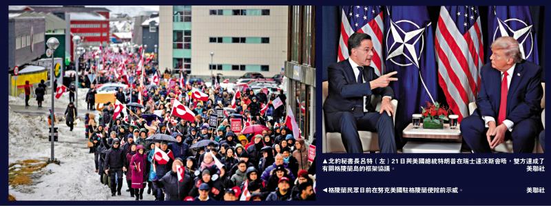 特朗普21日在達沃斯會晤呂特,隨後在社交媒體發文稱,雙方已「制定關於格陵蘭島乃至整個北極地區未來協議的框架」,如果這一解決方案最終達成,將對美國以及其他北約成員國大有裨益。因此,他不會實施原定2月1日生效的對丹麥、挪威等8個反對美國霸佔格陵蘭的歐洲國家加徵關稅措施。