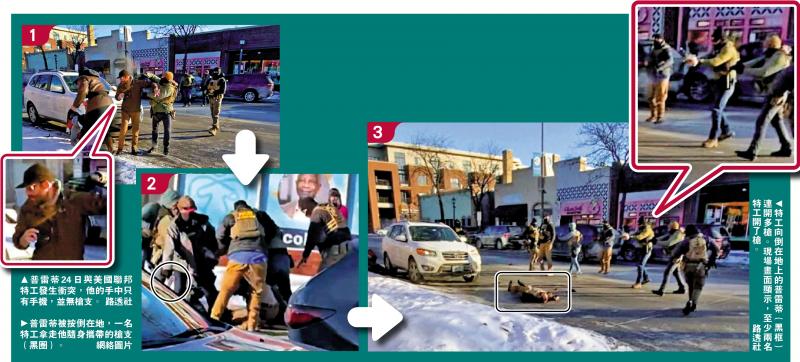 圍繞普雷蒂之死的鬧劇與本月7日美國移民與海關執法局(ICE)特工槍殺37歲女子古德時如出一轍。當時特朗普政府同樣指控古德為「國內恐怖分子」,民主黨人則批評ICE特工濫用武力、草菅人命。