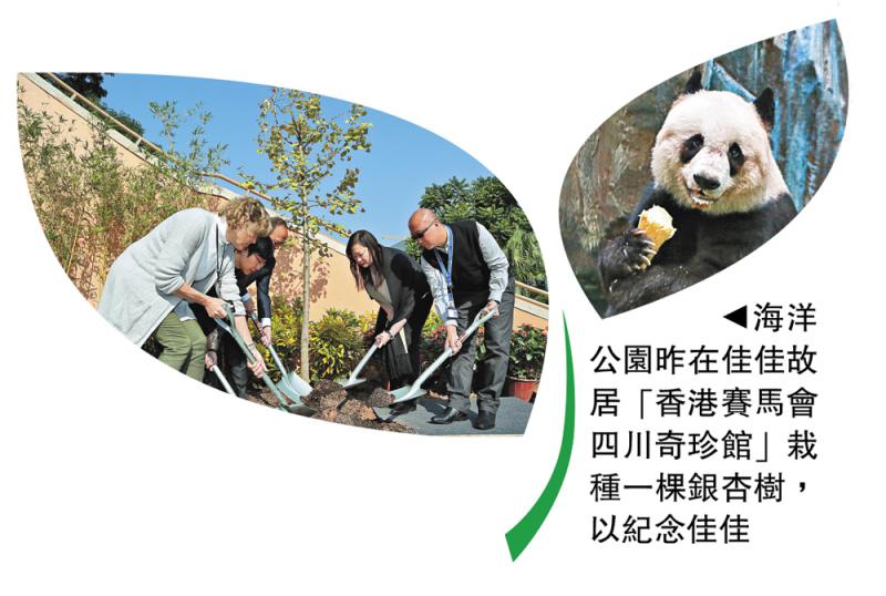 圖:海洋公園昨在佳佳故居「香港賽馬會四川奇珍館」栽種一棵銀杏樹,以紀念佳佳