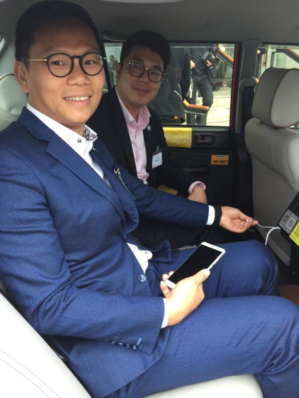 民建聯立法會議員陳恒鑌(Ben)同劉國勳(Edward)專程一齊試坐新車,大讚舒服,有得叉電、上網同電子付款好吸引。Edward話經常要穿梭北區與港島,經常趕時間要「飛的」,不時遇到拒載唔想過海嘅「冚旗」的士,樂見更多好司機。本身係立法會交通事務委員會主席嘅Ben就話,難得有的士商肯蝕住投資改善服務,值得公眾多啲鼓勵。