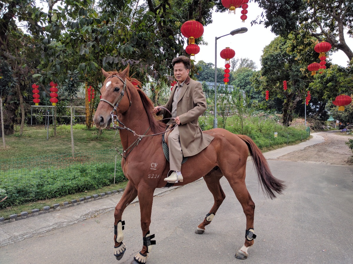 同大家傾傾嚇,有人騎住梁福元馬房嘅馬經過,梁福元話自己有時巡視業務都會騎馬,因為騎馬快啲同可以上去車去唔到嘅地方。話口未完,梁福元就騎咗上馬背行咗一圈畀大家睇,相當威風。佢話,原來當初都係學識咗騎馬先考慮開馬房,不過自己就鍾意騎馬多過賽馬。