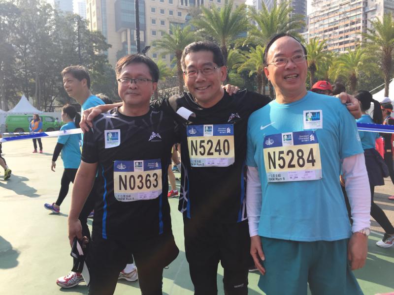 訪問期間,馬逢國剛剛就到達,仲即刻同蘇局長拍膊頭。馬逢國今年都係玩10K,原本目標就係一個鐘搞掂,不過而家應該一個鐘頭十零分鐘。佢話自己平時其實冇認真備戰,「立法會『拉布』嗰時咪走上立法會五樓common room跑步機跑下咁囉」,實行跑步抗「拉布」,高招!三星期前,馬議員仲移師到跑馬地球場練習,雖然操得咁fit,不過佢就話未有打算跑半馬。