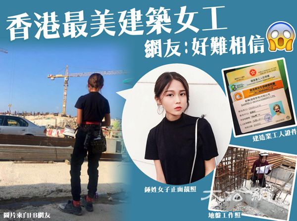 大公网1月17日讯 日前,有香港网友在社交平台发布一组图片,图中可见一位在地盘工作的女孩,换上便服就「变身」长相清秀甜美的靓女,不少网友纷纷留言感慨「好难相信」,称她为香港「最美建筑女工」。据网友爆料,该女姓锺,从事建造业已有一段时间,负责操作墨斗。