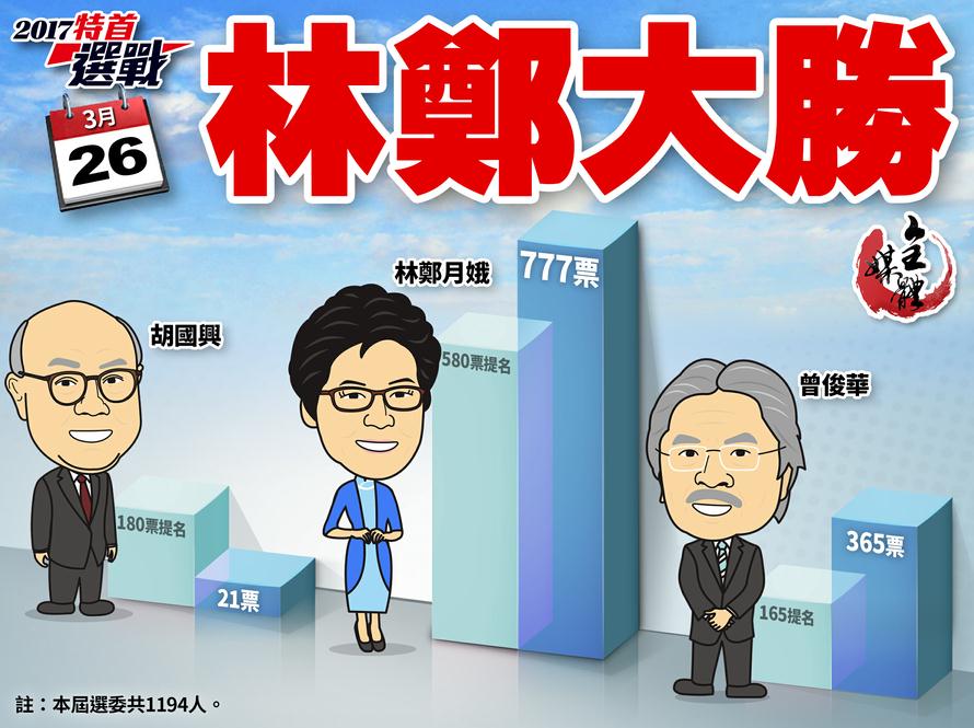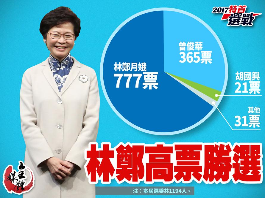特首選舉 林鄭月娥以777票勝出