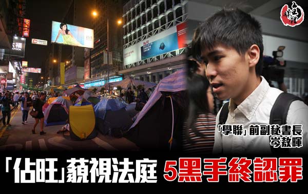 「香港眾志」秘書長黃之鋒、「學聯」前副秘書長岑敖暉等20人,涉嫌在2014年非法「佔中」期間,於旺角「佔領區」阻止警方及執達主任執行法庭禁制令清場,被控刑事藐視法庭,案件6日在香港高等法院續審。5名被告包括岑敖暉已於庭上認罪,而黃之鋒在開庭前在庭外亦表示將認罪。