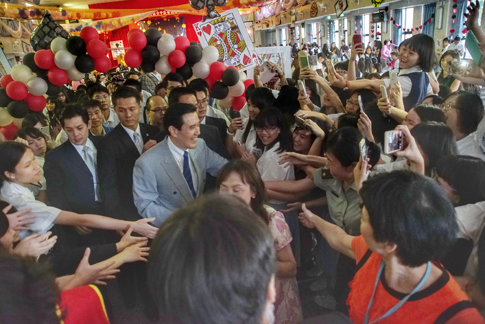 圖:馬英九(中左)4日在台北出席文德女中畢業典禮,受到學子與家長的歡迎\中央社