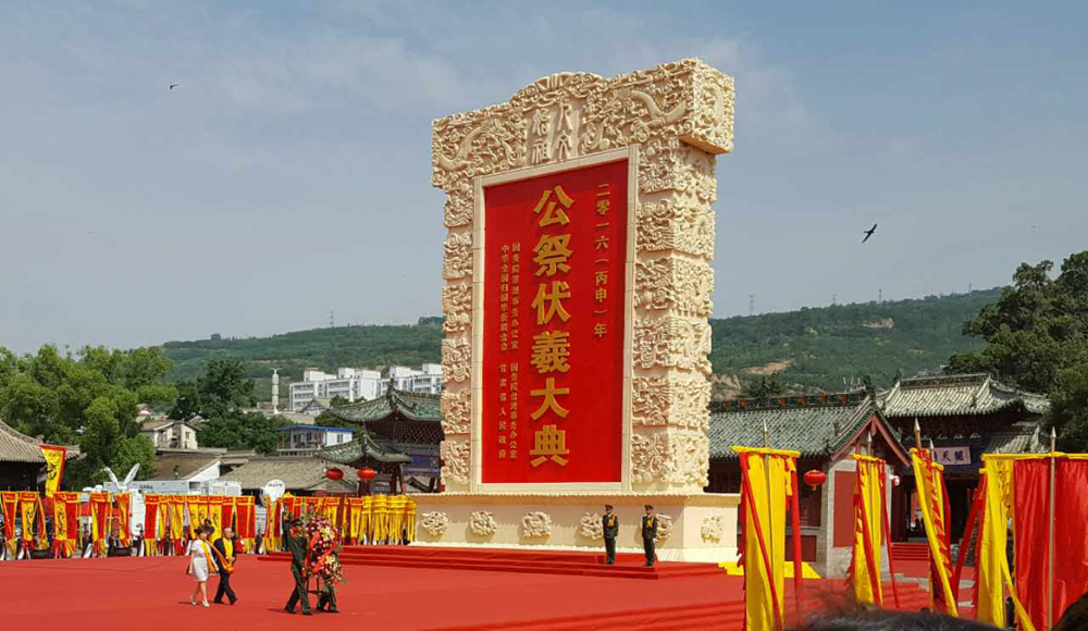 【大公報訊】記者楊韶紅、劉俊海天水報道:2016(丙申)年公祭中華人文始祖伏羲大典,22日在甘肅天水伏羲廟和台灣台北市中影八德大樓同時舉行兩岸同胞共祭中華人文始祖伏羲。台灣政要和各界代表近3000人在台北中影八德大樓參加了此次活動,同時由甘肅省政協有關領導帶隊,組成「甘肅省伏羲文化交流團」赴台參加該典禮,開展文化交流。此外,中國國民黨榮譽副主席詹春柏及夫人巫秀娥、新黨主席郁慕明和台灣東部三縣村里長代表人士參訪團、台灣公教聯合會祭祀人文始祖伏羲參訪團、台灣台北伏羲廟參訪團等六個團組參加了天水公祭伏羲大典。