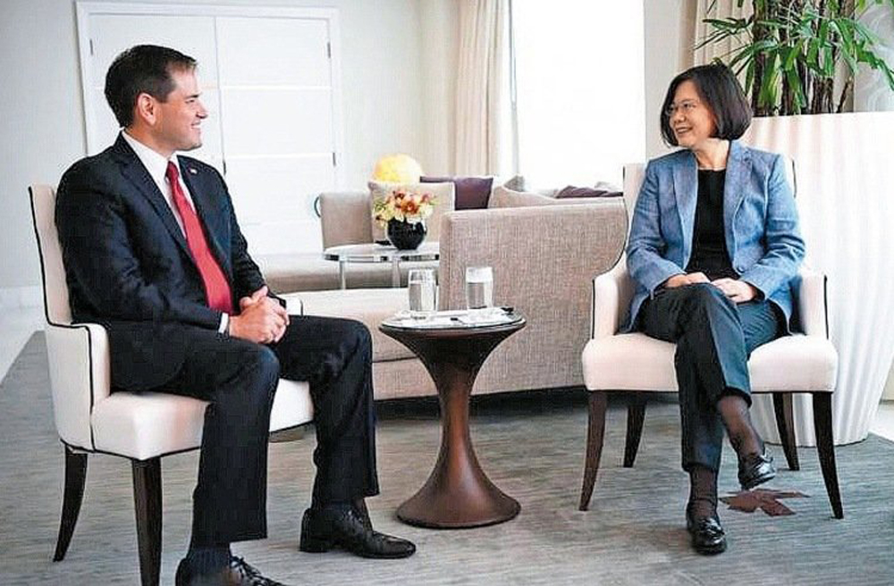 圖:中國台灣地區領導人蔡英文於24日在美國邁阿密過境,並與美國參議員馬可.魯比歐(左)會面 網絡圖片