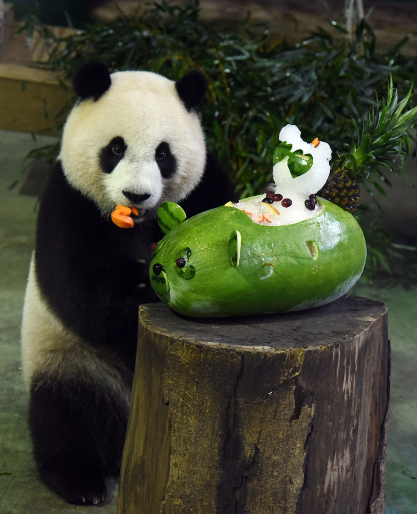 【大公報訊】據中通社報道:在台灣出生的大熊貓圓仔6日迎來3歲生日,台北巿立動物園當天上午11點為其網絡直播約19分鐘慶生,並準備西瓜形狀的生日大餐,吸引2000多名粉絲觀賞。當日,保育員特別用夏天的水果,幫夏天出生的圓仔製作西瓜蛋糕,並設計成船的造型,祝福準備獨立啟航的圓仔。作為第一隻在台灣出生的大熊貓,可愛模樣吸引眾多粉絲朝聖,動物園每天網上直播一小時圓仔生活。