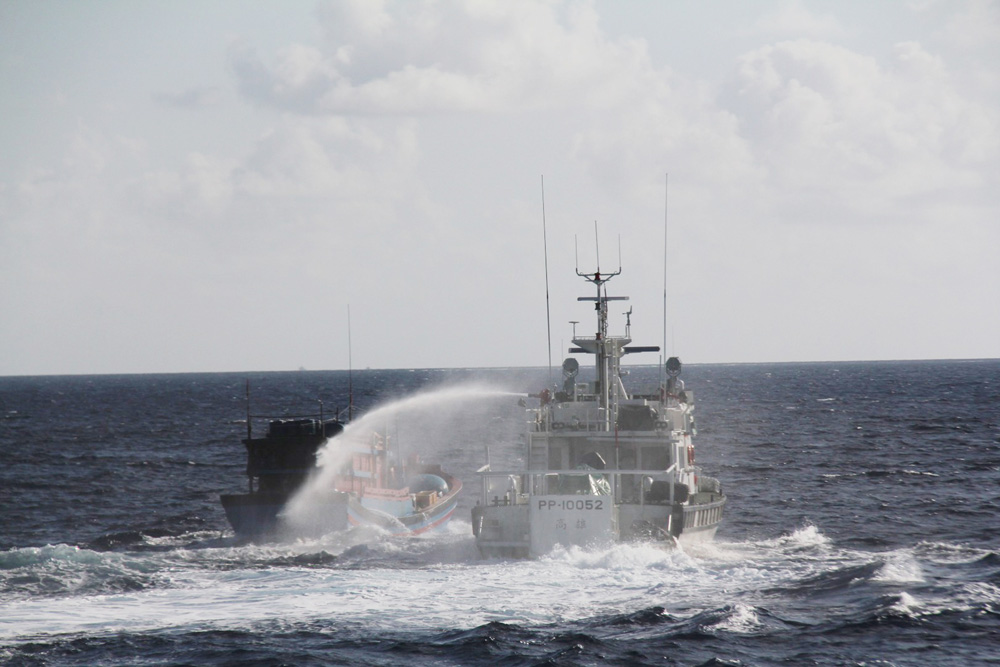 圖:台灣駐守太平島的巡防艦曾於今年1月以水炮驅離越南漁船/資料圖片