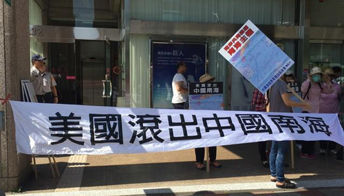 圖:台灣民間團體13日在台北抗議美國介入南海主權爭端/中評社