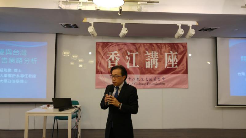 鈕則勳在講座上還對香港與台灣的競選廣告策略進行了分析。他表示,國民黨近年在選舉中連連失利,除了政績問題,選舉策略也失誤,尤其選舉廣告未能打動選民。國民黨最優秀的政績是兩岸關係,但2016年大選國民黨候選人朱立倫的競選廣告卻未主打此領域,雖然可能受「太陽花學運」掀起的「反中」氣氛影響,但國民黨因此退縮,反令藍營選民不滿。