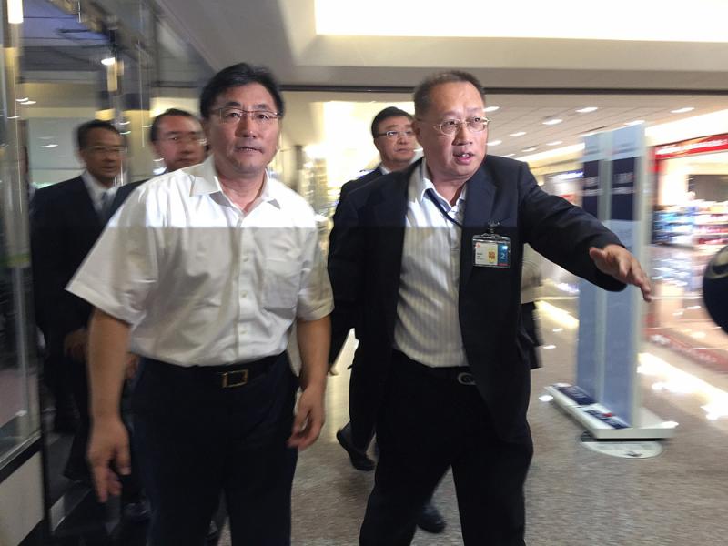 圖:大陸海旅會秘書長劉克智(前左)等人20日下午搭機抵台善後/中央社