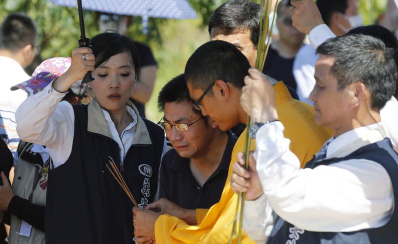 圖:23日,火燒車罹難者家屬在事故現場悼念 中新社