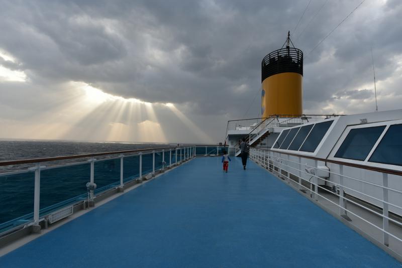 有從未乘過豪華郵輪的人擔心旅程無聊,如前面提過的,船上提供很多節目,就算什麼活動都不參加,躺在甲板上曬太陽、吹海風、看書或發發呆,也是一種享受。第五天下午,船方舉行兩場離船說明會,分別以普通話和廣東話進行,後者由中國籍乘務員鄔小姐主講,前半段講離船規則和注意事項,後半段則介紹船員生活,這是我乘郵輪以來第一次聽到的。鄔小姐道出了船員的辛酸,特別是非歐美籍船員,工時超長,工資偏低,又飽受長期離鄉背井之苦,有人為了生計,長達五年沒有回過家,見親人一面也是奢望,別以為內地船員到了內地港口就可回家,船員只能輪流上岸一兩個小時購買日用品。客輪船員工作壓力特大,送走一批客人,馬上又迎接新的客人,乘客一個不文明的行為,都會對船員造成極大壓力。鄔小姐講話內容實在,真摯感人,曾經當過海員的我也為之動容,旁邊一位老伯掉淚了。