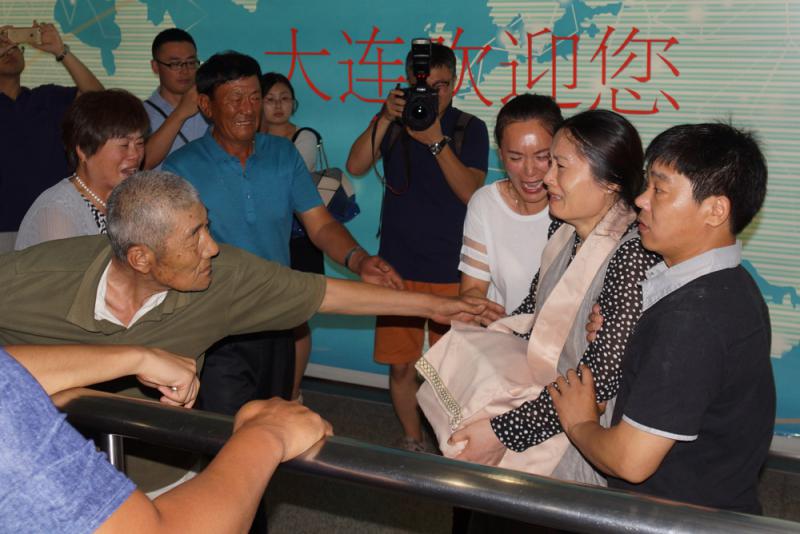 圖:遇難者家屬抵大連時泣不成聲 宋偉攝