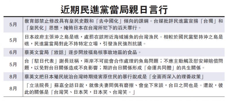 近期民進黨當局親日言行