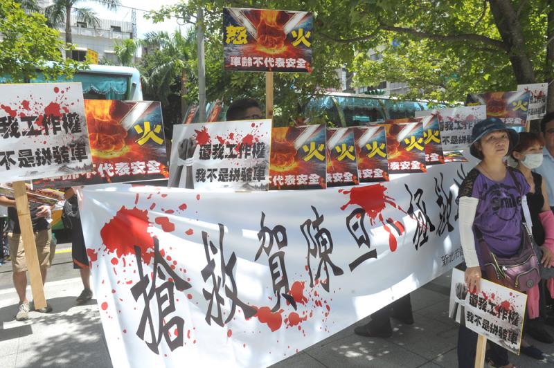 圖:新北市遊覽車業者8日集會抗議\中央社