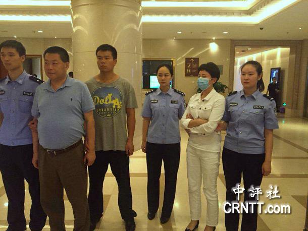 獵狐行動小組同日將將劉寧(左二)和孟洋(右二)從台灣押返北京,並於當晚十點多在首都機場將嫌犯劉寧和孟洋移交給了湖南常德市警方。(網絡圖片)