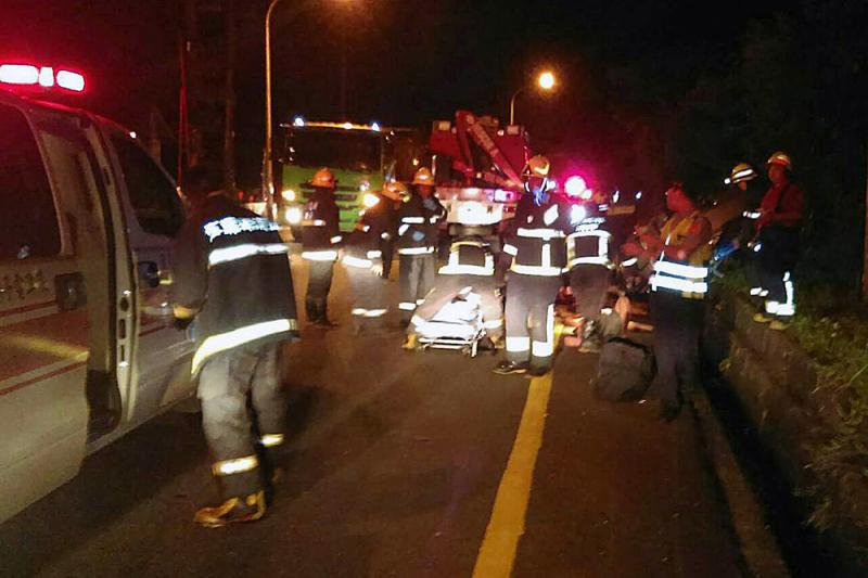 圖:14日晚,蘇花公路一輛私家車在排水溝翻覆,造成4死2重傷/中央社