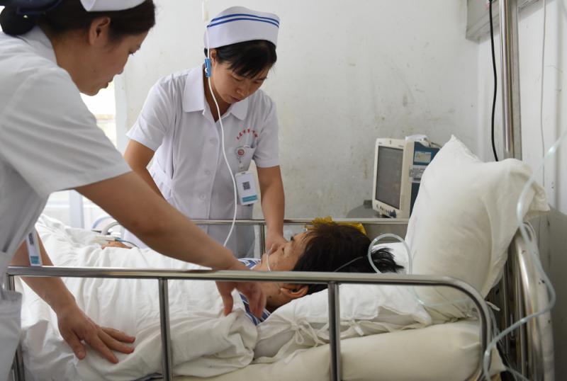 圖:14日,龍岩市第一醫院護士為受傷台灣旅客進行護理/新華社