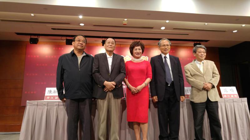 圖:由香江文化交流基金會主辦的「香江論壇」25日在香港舉行。圖為出席論壇的嘉賓(左起):美麗島電子報專欄作家陳淞山、中國文化大學推廣部兩岸關係研究中心執行長邵宗海、香江文化交流基金會主席江素惠、前台聯黨主席蘇進強、台灣資深專欄作家範疇 朱瑞宜攝