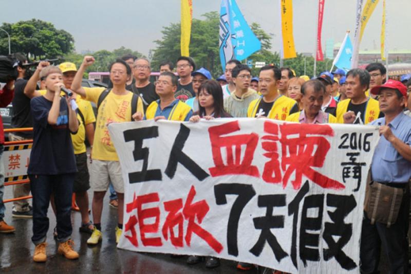 圖:日前,有台灣工人不滿政府調整假期,上街遊行,要求保障工人權益,拒砍七天假\網絡圖片