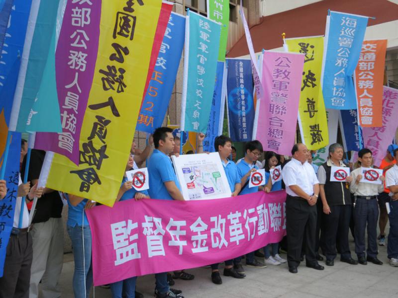 圖:監督年金改革行動聯盟1日舉行記者會呼籲退休軍公教走上街頭抗議\中央社