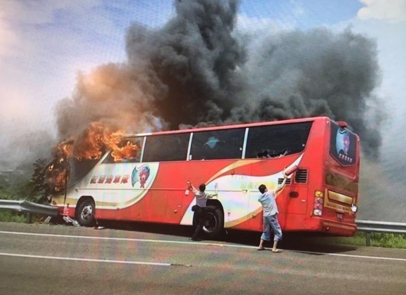 檢方估計至少有8公升的汽油在駕駛艙瞬間燃燒,連遊覽車底盤鋼板都被燒穿,且火勢迅速蔓延,阻斷乘客從前方車門逃生通道,加上司機在當下可能已失能,遊覽車左右偏移,撞上護欄後,後車門被護欄卡住,阻斷乘客最後逃生的機會。