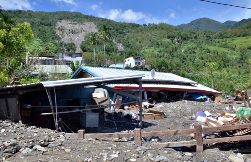 圖:台東紅葉村因「莫蘭蒂」颱風帶來的大雨,引致土石坍塌,泥石流衝入村落,村民家園被埋 中央社