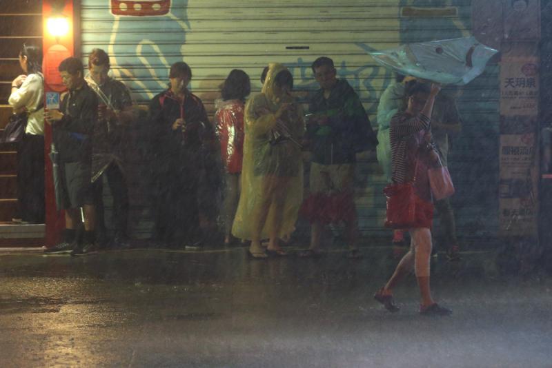 圖:雖然颱風來襲,但北投公園Pokémon GO熱潮不因風雨而熄滅,仍有不少民眾前往捉精靈 中央社