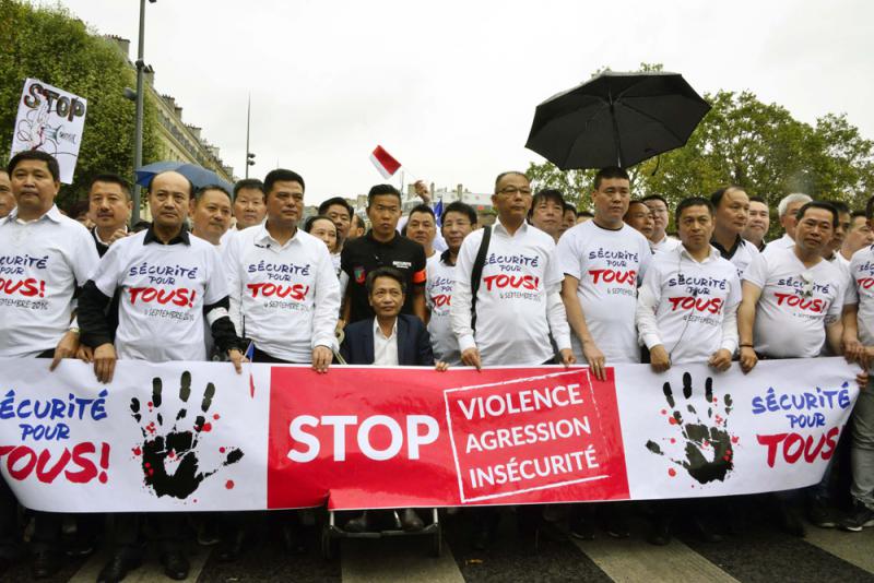 圖:法國今年以來針對華人的暴力案件有上升趨勢。圖為來自法國社會各界的數萬華僑華人最近舉行「反暴力,要安全」遊行\資料圖片
