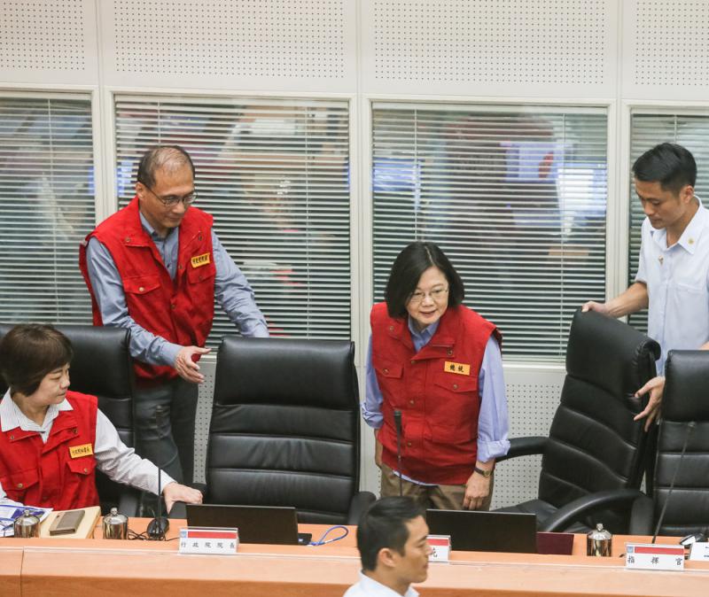 圖:蔡英文(後右2)27日上午視察災害應變中心\中央社