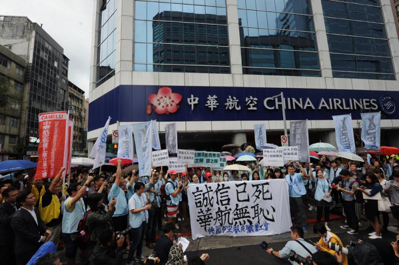 圖:桃園市空服員工會上周抗議華航違反罷工後雙方簽署的團體協約/ 資料圖片