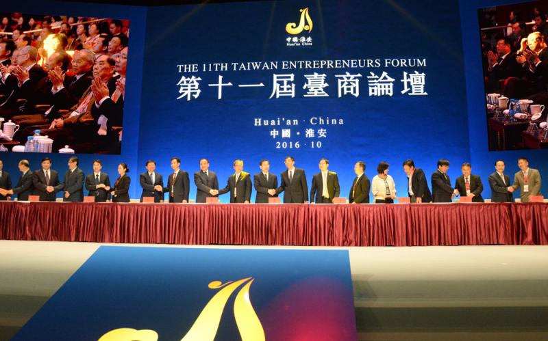 為期三天的第十一屆台商論壇20日在江蘇省淮安市閉幕,其間共有36個台資項目簽約,總投資達18.9億美元。有台商指出,大陸仍是台商投資首選地,並直斥民進黨當局領導人蔡英文提出的「新南向政策」是「扯淡」。/大公報記者賀鵬飛淮安報道