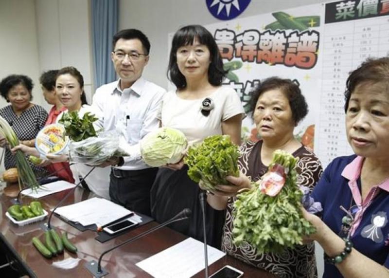 圖:台灣進來菜價飛漲,市民怨聲載道,當局束手無策。國民黨「立委」聯合多名家庭主婦召開記者會,批評民進黨政府在菜價問題上表現無能\網絡圖片