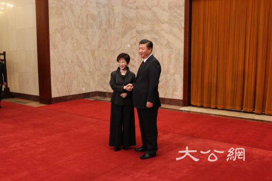 中共中央總書記習近平會見中國國民黨主席洪秀柱。大公網記者李柏濤攝
