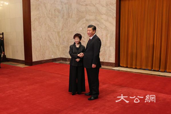 大公網北京11月1日電 (記者 李柏濤)中共中央總書記習近平今在北京人民大會堂,會見了訪問大陸並參加兩岸和平發展論壇的中國國民黨主席洪秀柱一行。