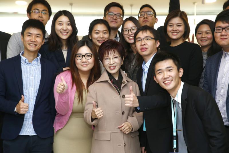 圖:1日,中國國民黨黨主席洪秀柱在北京參觀中關村青創基地,並與台灣青年創業者座談\中新社