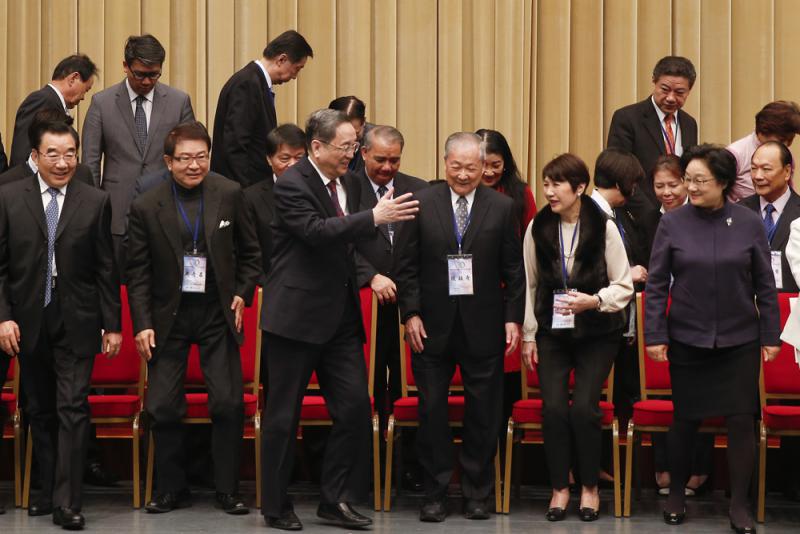 圖:中共中央政治局常委、全國政協主席俞▉正聲23日在北京會見了饒穎奇率領的台灣民意代表交流參訪團一行 中新社