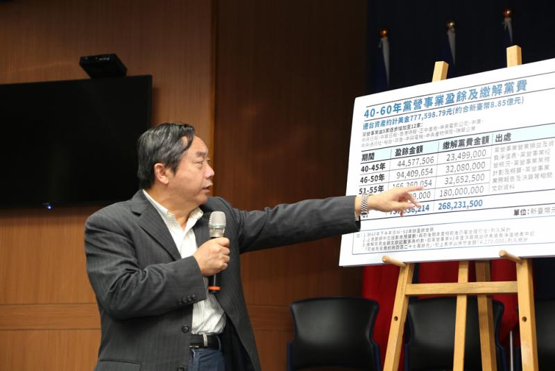 邱大展24日下午在國民黨記者會上,痛批黨產會「先射箭再畫靶」,是罔顧事實、胡作非為、蠻幹,完全沒有看國民黨10月28日向黨產會提出的中投第一桶金資料。中投財產很多來自黨員、地方人士捐贈,資金來源百分之百合法,都是正當來源。