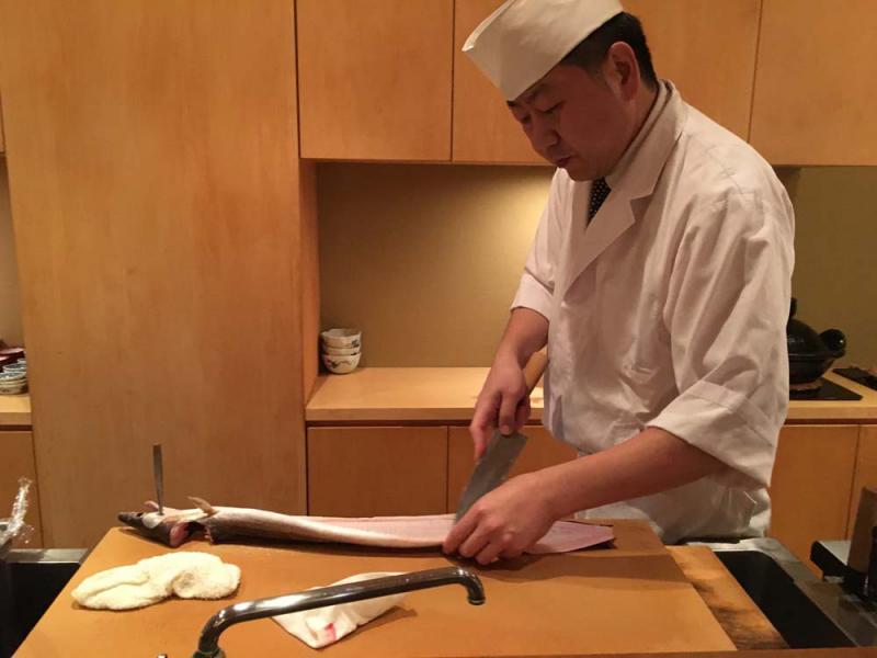 圖:「銀座とよだ」大廚展示刀工技藝