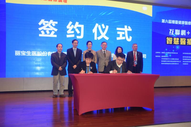 論壇期間,台灣麗寶生醫股份有限公司跟廣州金域醫學檢驗中心有限公司簽署合作協議。 (記者 盧靜怡)
