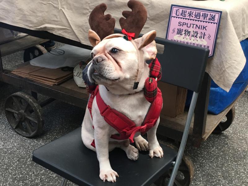 「毛起來過聖誕」寵物聖誕市集24日在台北舉行,不少民眾帶着心愛的毛小孩參與活動。 中央社