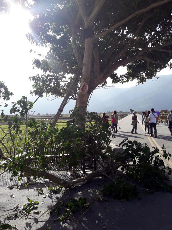 圖:台東「金城武樹」25日下午被一部工程車勾斷樹枝,砸傷一名70歲男遊客 中央社